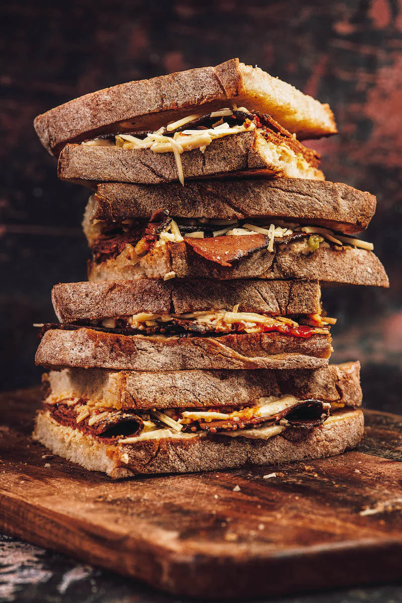 Inspired by the much loved staple of New York Jewish cuisine, these Pastrami Style Slices are aromatic, savoury, slightly smoky in flavour and fantastically tender. Sgaia coat every slice with a thin layer of extra virgin olive oil to preserve tenderness and keep it flavourful. Pairs well with a strong vegan cheese, added to a reuben or added to crackers as a light snack.