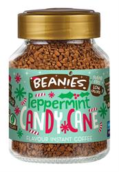 Peppermint Candy Cane Flavour Coffee in a 50g Jar.