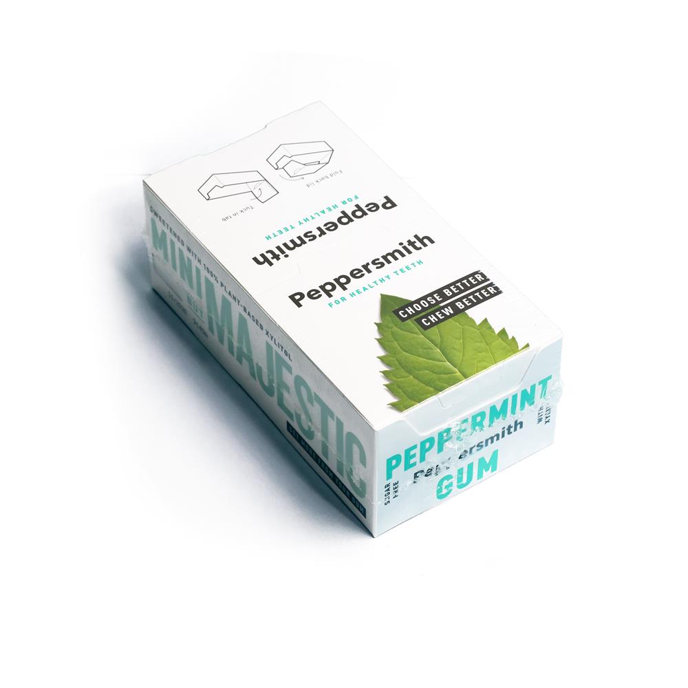 Premium Peppermint Xylitol Gum 50g, flavoured with real British mint oil and pac...