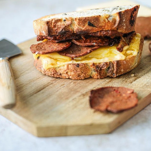 Lovingly handmade in Scotland by artisanal producers, this spicy charcuterie classic pairs well with a strong vegan cheese, or of course layered generously on any pizza.