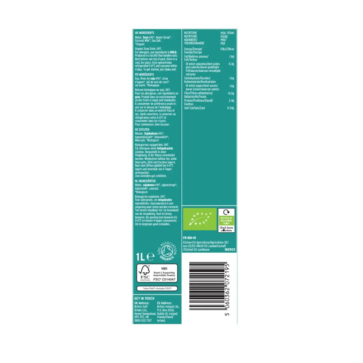 Choosing Plenish Organic Soya Milk means you're making a sustainable choice. Each litre saves 8g of CO2 compared to regular milk production, allowing you to enjoy your morning brew with a clear conscience.