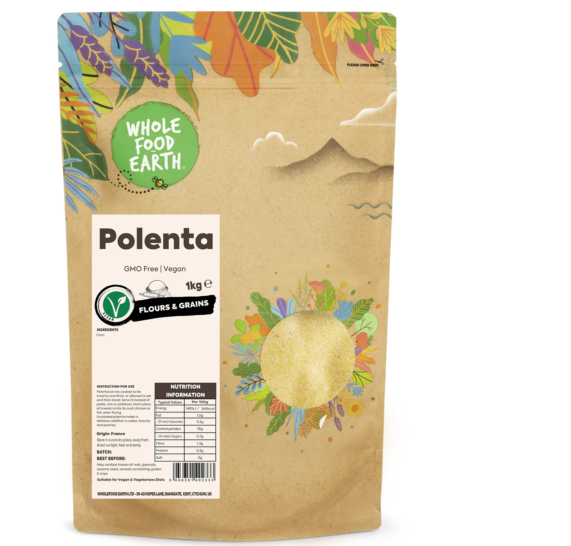Polenta is a ground form of dried maize. It is common staple food in many countries, and is ground to medium and coarse consistencies, but not as fine as wheat flour.