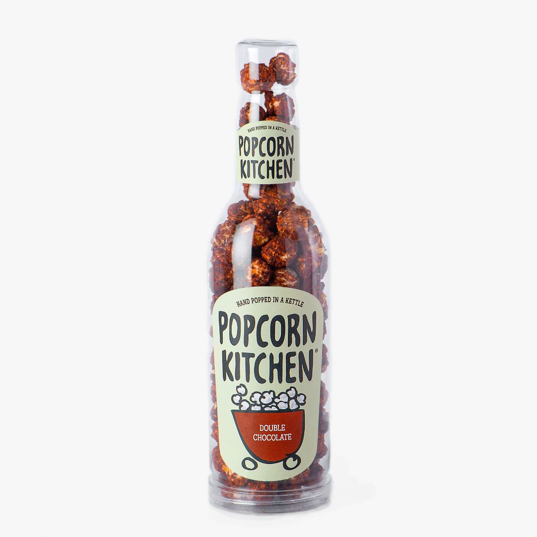 Double Chocolate Gift Bottle: Our hand-popped gourmet popcorn coated in a seriously chocolatey caramel made with Belgian chocolate and then packed into our novelty gift bottle format.
