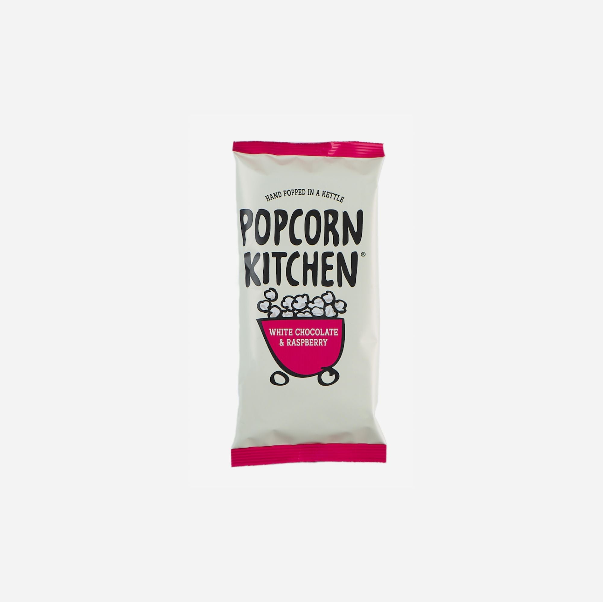 White Chocolate & Raspberry: Our hand-popped gourmet popcorn smothered in Belgian white chocolate and freeze dried raspberries, what a combination!