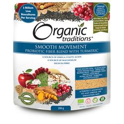 Organic Traditions Smooth Movement Probiotic Fiber Blend with Turmeric is the ultimate nutrient-dense superfood fiber formula containing cold milled chia and flax seeds, acacia gum, baobab fruit, apple peel, cranberry seed powder, prickly pear fruit, nopal cactus leaf, turmeric powder extract as well as pre and probiotics. Chia and flax seeds are a source of fiber, vitamins, minerals, antioxidants...