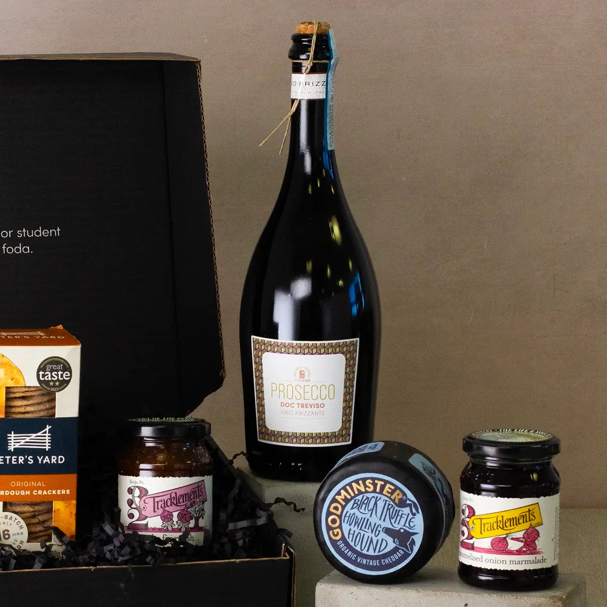 Discover the perfect union of sparkle and flavour with our prosecco and cheese gift set. This elegant cheese and prosecco hamper is crafted to delight discerning palates and elevate any celebration, from an intimate evening at home to a festive gathering. Each element of this gift basket has been carefully chosen to deliver a premium tasting experience. Enjoy the refreshing effervescence of Prosecco DOC Treviso Frizzante, an Italian classic that brings a lively burst of bubbles to every sip, perfectly balanced with a selection of artisanal cheeses. Imagine the rich, velvety tones of Godminster Vintage Bruton Beauty Organic Cheddar and the smoky allure of Oak Smoked Cheddar harmoniously blending with gourmet accompaniments such as Tracklements spreads and Peter’s Yard sourdough crackers. This curated collection not only promises a sensory delight but also incorporates high-quality organic ingredients known for their natural goodness and flavour depth. The prosecco and cheese gift set effortlessly transforms any occasion into a special moment, whether it is being given as a gift or enjoyed as a personal indulgence. Its carefully paired components speak of artisan craftsmanship and attention to detail, ensuring every bite and sip is a celebration of taste. For those seeking even more curated selections, explore our range of exquisite Cheese Gifts.