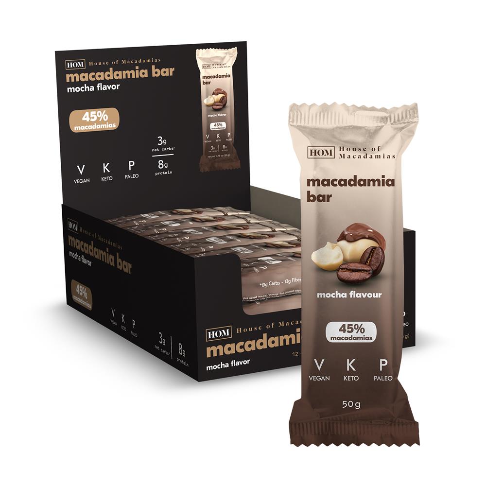 Take your coffee fix to a new level with our mocha flavoured macadamia bar, feat...