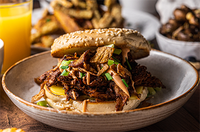 Water, BBQ sauce (40%) (water, tomato paste, sugar, mustard (water, MUSTARD seeds, sugar, vinegar essence, salt, seasoning), apple juice concentrate, pepper, burned sugar, salt, tomato, onion, garlic, white wine vinegar, smoked salt, ginger, acidity regulator (citric acid), parsley, black pepper, cayenne pepper), SOYA protein concentrate (15%).