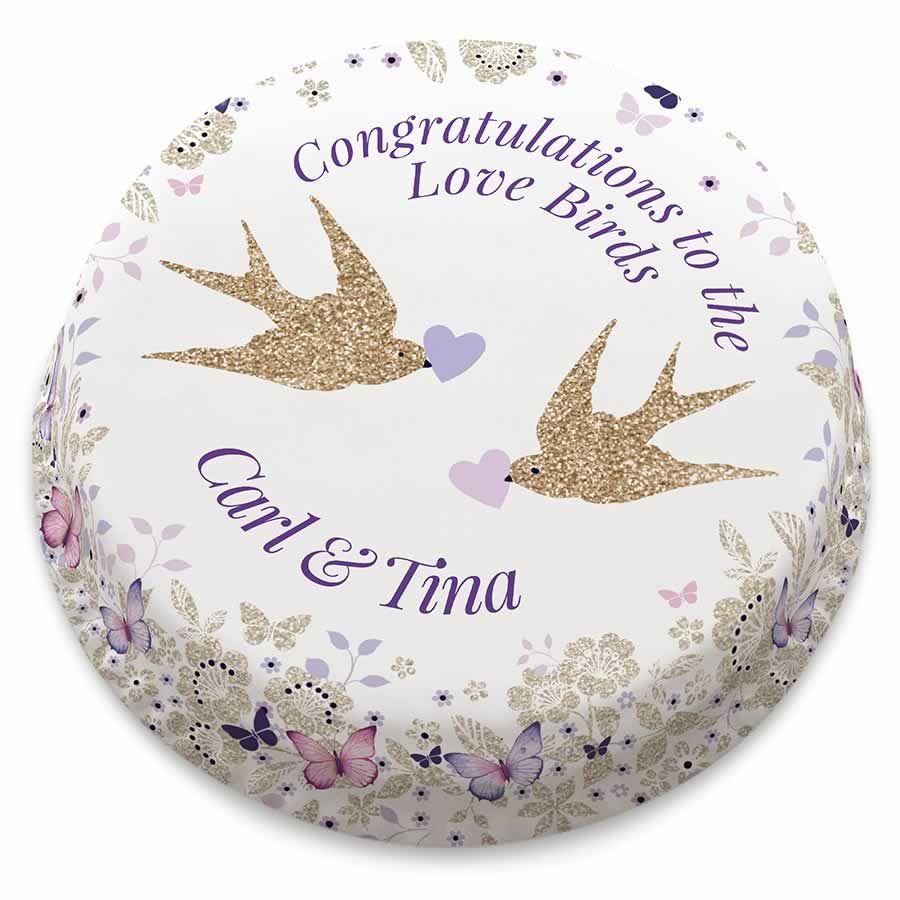 Send congratulations to the love birds on their engagement with this sparkly Purple Love Birds cake. Our beautiful and fun animal birthday cakes are great for all those animal lovers.