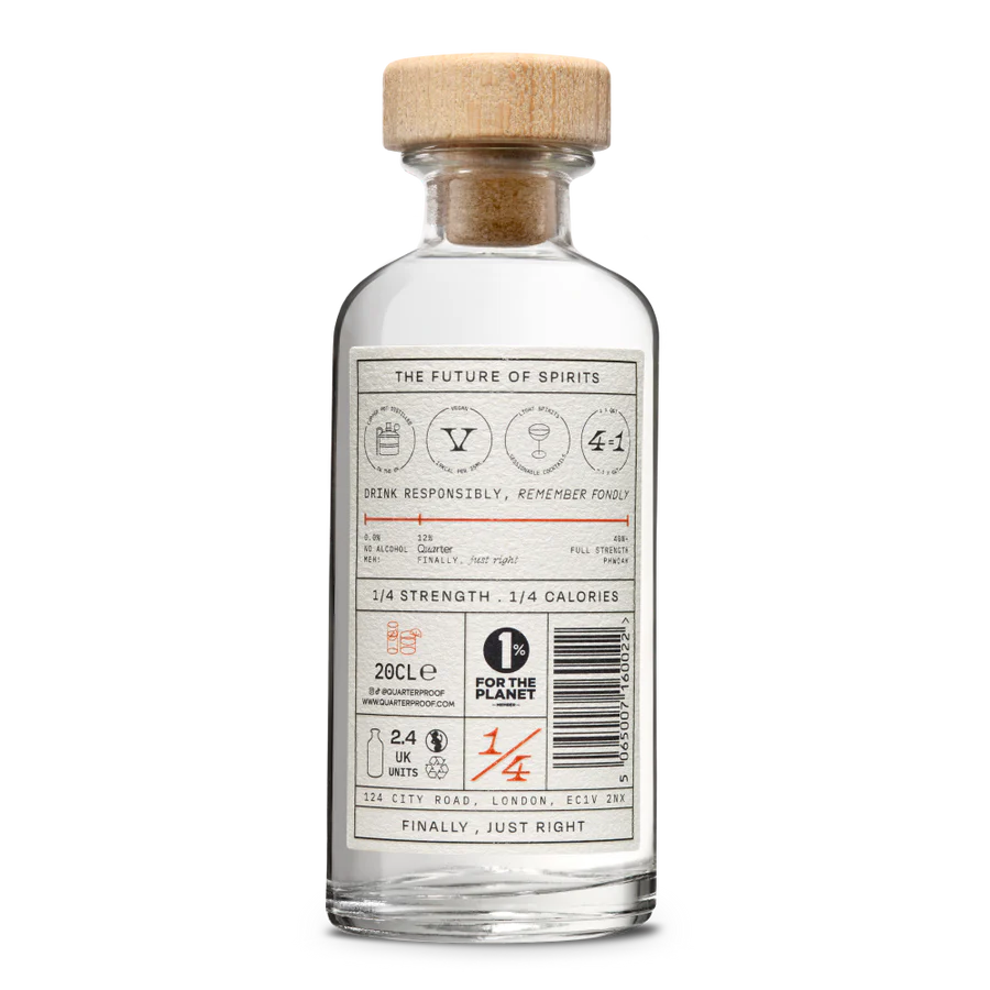 Quarter is the future of moderation. London Dry Gin flavour at 12% Volume, and by adding a unique blend of botanicals and citrus through sweet orange and grapefruit, Quarter Gin has created the most refreshingly light Gin you have ever tasted.