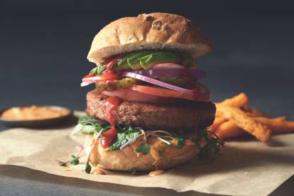 Our meat free masterpiece is BIG. A vegan, gourmet, thick cut quarter pounder, which is succulent with the juice of beets for mouth-watering deliciousness. Grills just like a regular burger and sizzles on a BBQ, how will you eat your vegan Ultimate Burger?