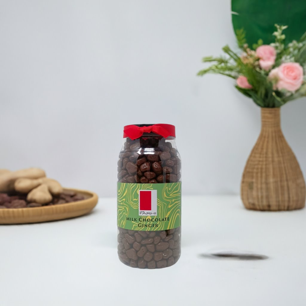 MILK CHOCOLATE COATED GINGER: Milk Chocolate (61.8%) (Sugar, Whole Milk Powder, Cocoa Butter, Cocoa Mass, Milk Fat, Emulsifier: Soya Lecithin), Crystallised Ginger (38%) (Stem Ginger, Sugar), Glazing Agent: Gum Arabic: Gum Arabic.