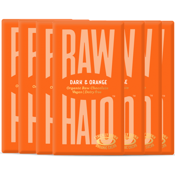 Our award-winning dark 76% raw chocolate teamed with zesty orange for dazzling flavour. Ethically sourced single-origin cacao that’s positively glowing. 35g single serving, a few squares for now, and a few for later.