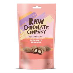 Crunchy almonds dipped in vegan organic chocolate with a decadent dusting of cac...