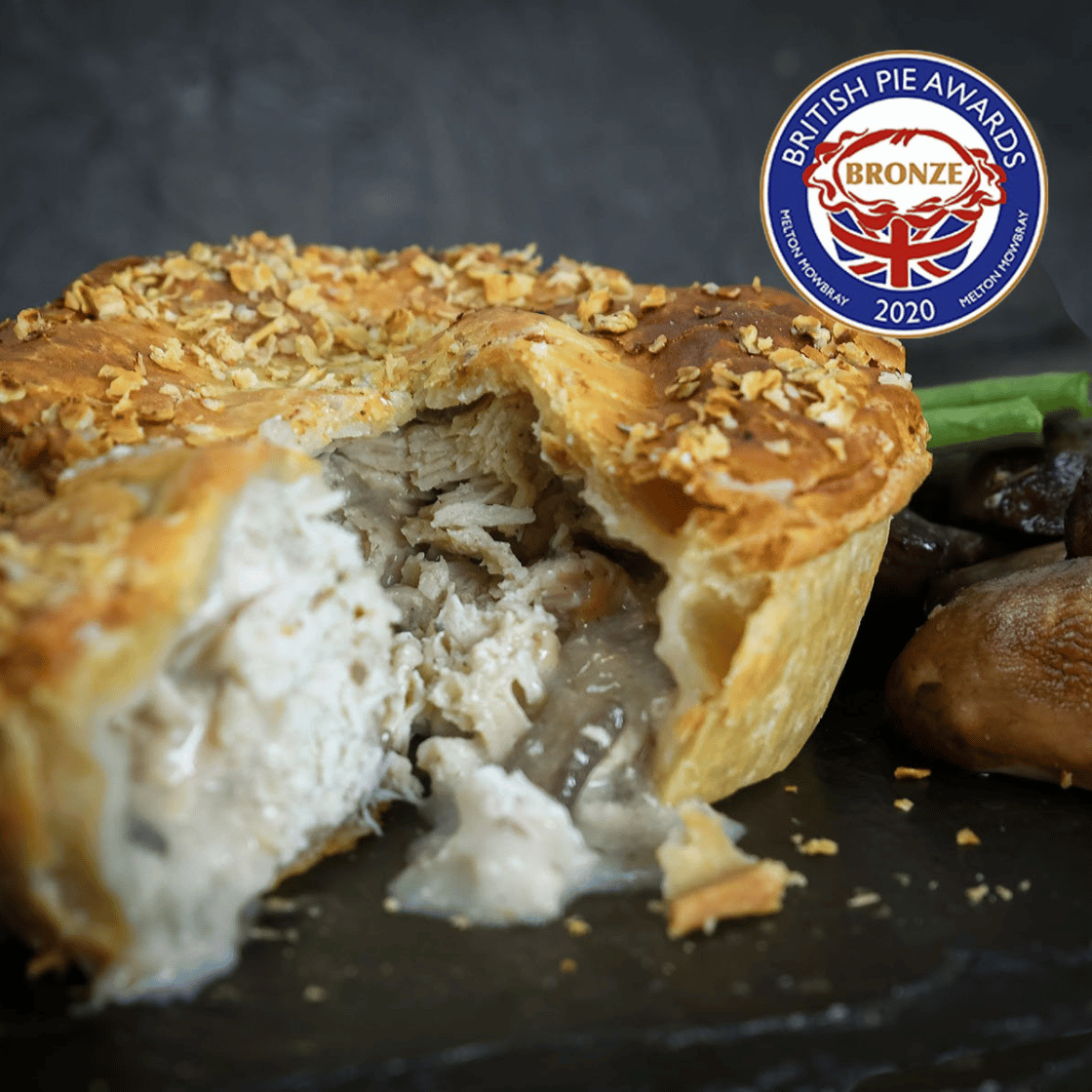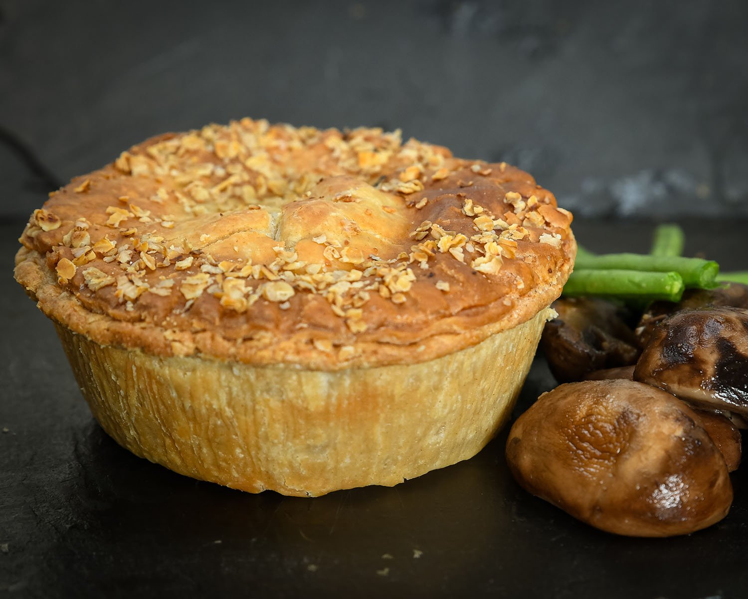 Delight in the delectable blend of the Chicken & Mushroom Gourmet Pie from The Pasty and Pie Co. Savour the tenderness of chicken breast immersed in a creamy chestnut mushroom sauce, all complemented by a rustic oat puff pastry lid. A culinary creation that promises a taste journey beyond the ordinary.