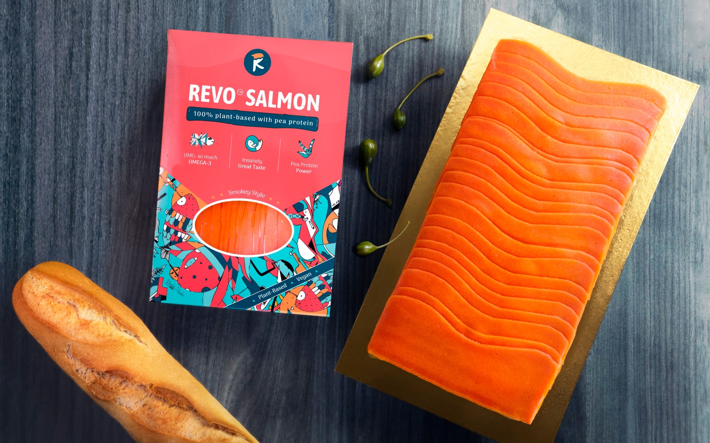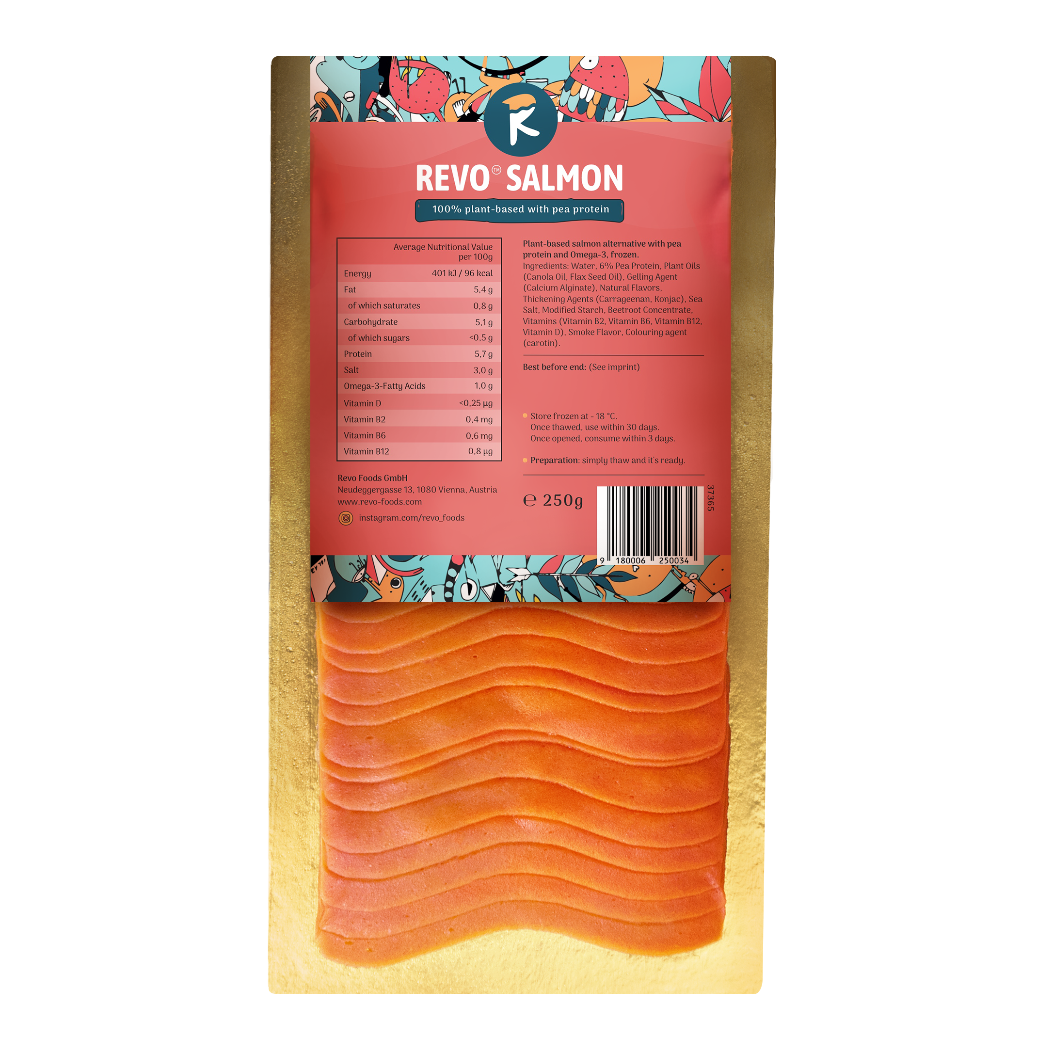 Revo Salmon – 100% plant-based, 100% delicious. Revo Food’s smoked salmon slices are made of pea proteins, plant oils, and algae extracts. Enjoy it in wraps, sandwiches, bagels, makis, pasta dishes or even as a pizza topping! Unleash your culinary creativity and create the ultimate plant-based meal. A great source of proteins, Omega-3 fatty acids, and vitamins, Revo Salmon is a healthy and delic...
