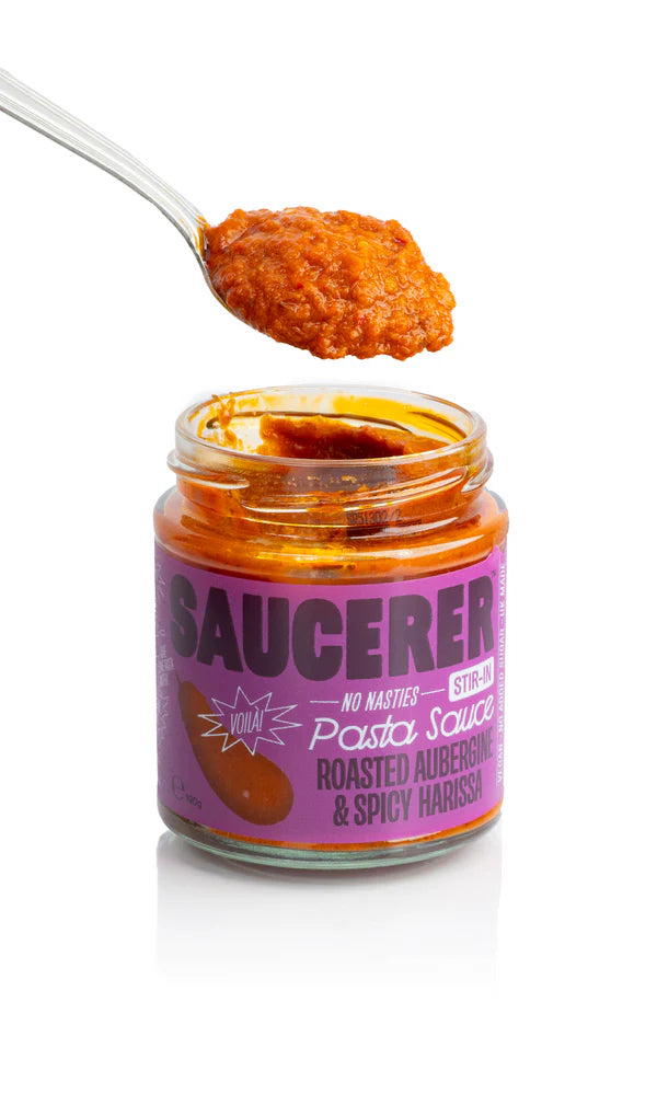 Inspired by Tunisia, this Roasted Aubergine and Spicy Harissa Pasta Sauce is a delicious blend of roasted aubergine from Spain, red pepper, onion, and tomato, crafted in the UK. Smooth and spicy pasta sauce is curated without any nasties or added sugar.