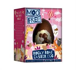 Alternative to milk and white chocolate Hollow Easter Egg with, biscuit rice balls (4%), raisins (3.0%), marshmallows (2.5%), and cinder toffee pieces (2.5%).