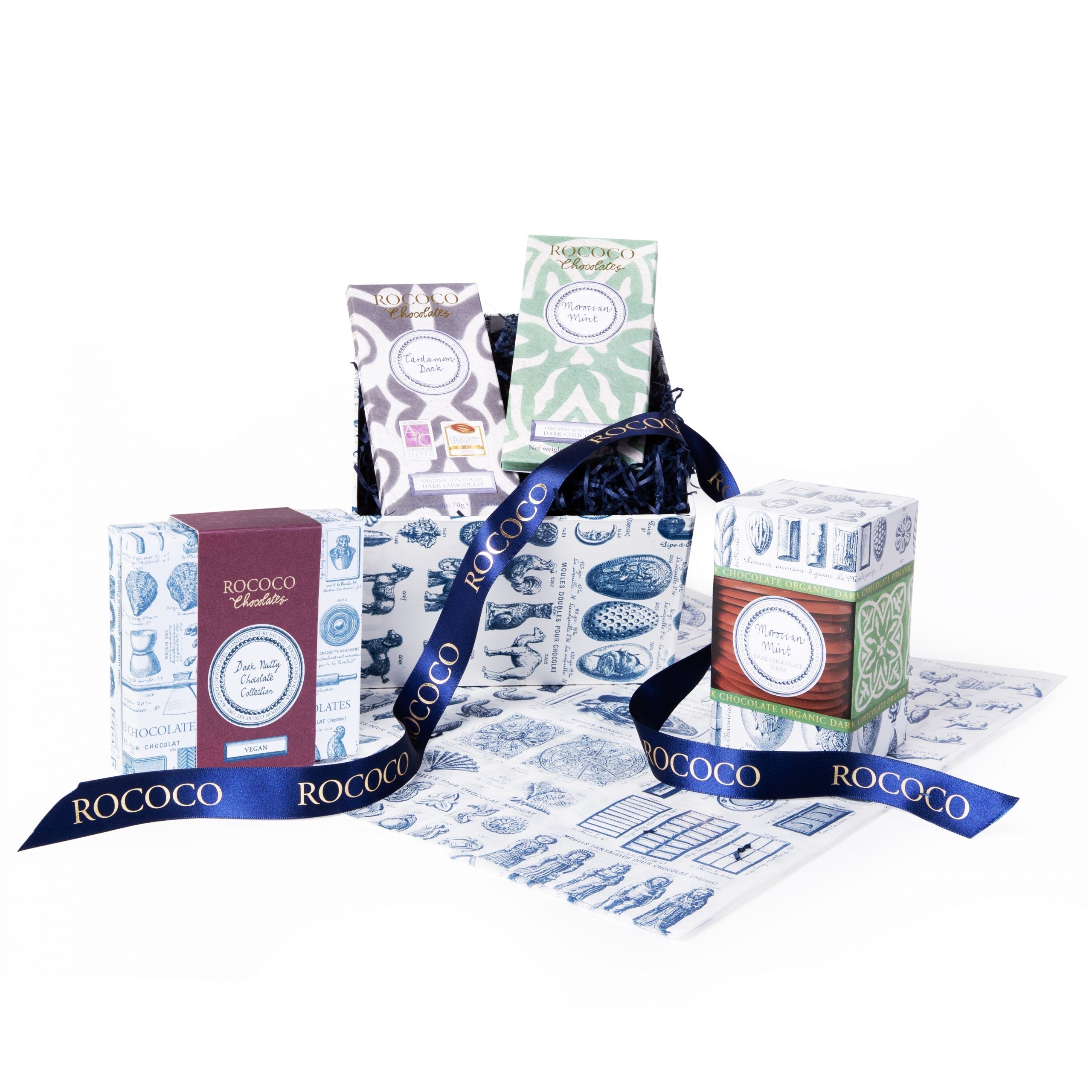 A luxury chocolate collection designed just for vegans, our classic Rococo Artisan Bars and Rococo Wafer Thins are plant-based, and deliciously flavoured with exquisite essential oils, or World-class Welsh sea salt.