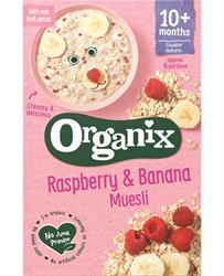 Organic muesli containing banana and raspberry suitable for 10+ months