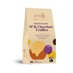 Salted Caramel M*lk Chocolate Truffles Creamy m*lk chocolate shell with a decadent centre of salted caramel ganache Within a smiith, delicate chcocolate outer shell made from the finest cocoa South America has to offer, hides a velvety, melt-in-your-mouth ganache speckled with caramelised almond brittle, a hint of vanilla and a touch of French sea salt. Pico Salted Caramel Truffles are the ult...