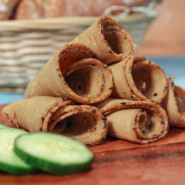 The Deli-style Sandwich Slices are one of the most popular Vegusto products on offer. They are perfect for sandwiches, cut into strips and added to salads, and are especially delicious together with a Vegusto Mushroom and No-Moo Vegi Burger. For a quick, tasty snack, the slices go great on top of bread, covered with tomatoes and your choice Vegusto No-Moo Cheese.