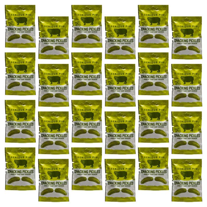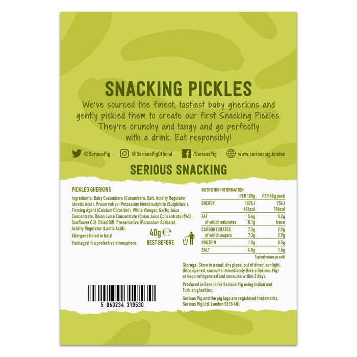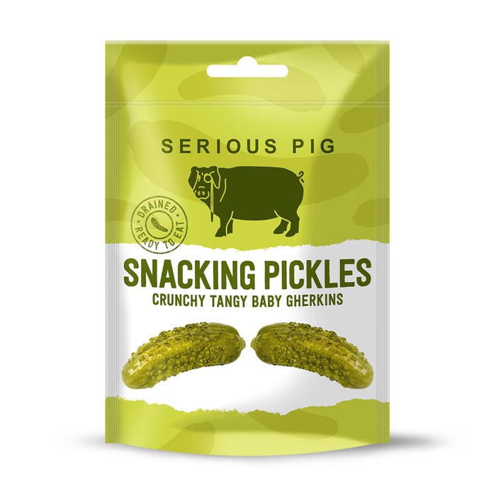 We've sourced the finest, tastiest baby gherkins and gently pickled them to create our first Snacking Pickles. They're crunchy and tangy and go perfectly with a drink. Eat responsibly! Drained and ready to eat. We take snacking very seriously which means your search can stop right here. Like all best stories, it started down the pub. On one of many lost evenings, our founders George and Jonny found themselves pondering a question - what would be the perfect snack to accompany a pint of real ale and glass of Bordeaux? Several discarded packets of crisps, scratchings and nuts later - the boys agreed that something more 'serious' was required and the concept of a 'Posh Pepperami' was hatched. 'Serious Pig' was born the very next day!