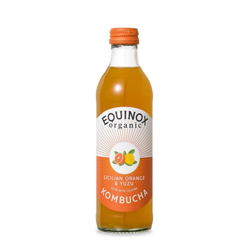 Experience the bold and sunny taste of Equinox Sicilian Orange Kombucha, a sparkling, fermented tea drink crafted with certified organic ingredients.