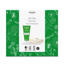 Cleanse & Replenish gift set features our top seller 'Skin Food Nourishing Cleansing Balm' complete with organic wash cloth and cleansing ritual to give you the best start to the day.