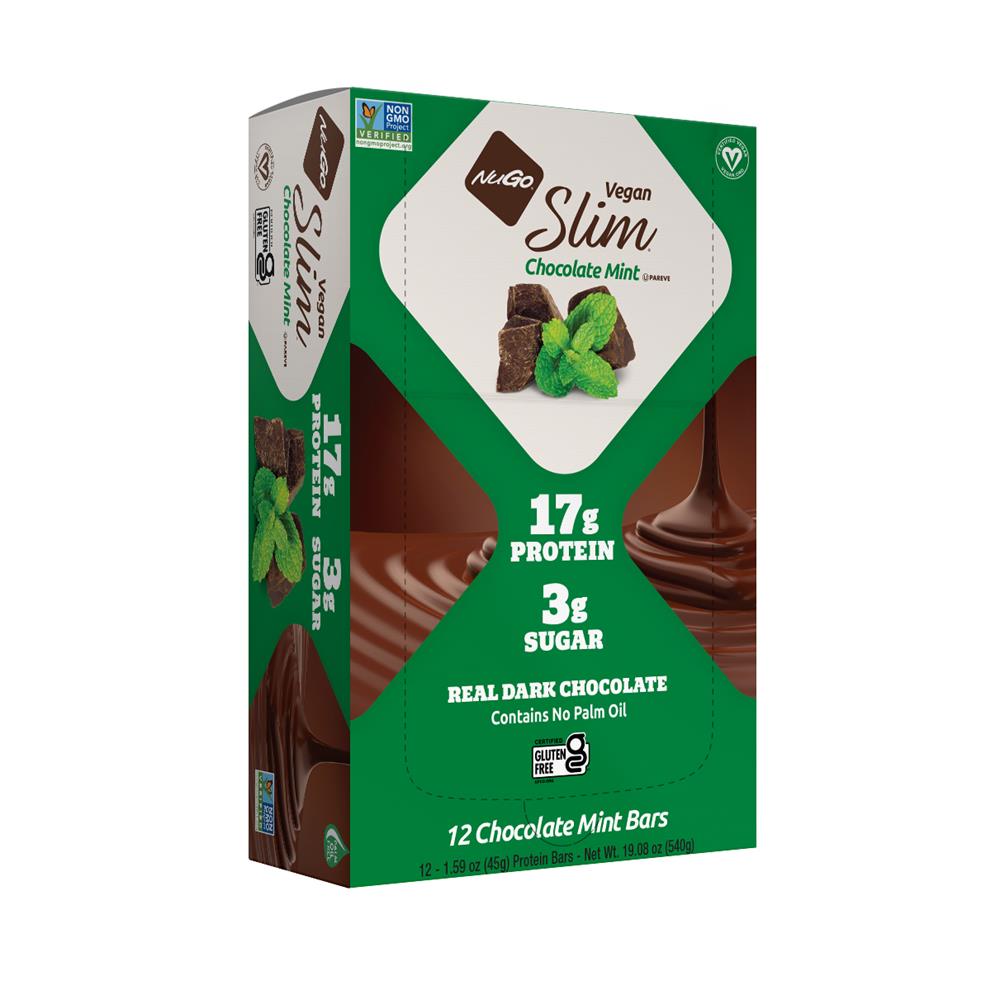Say hello to guilt-free, Real Dark Chocolate covered, low sugar protein bars. NuGo Slim bars have 16-17g of protein, 6-7g of fiber, 6-7 net carbs, only 3g of sugar, and are tested very low glycemic. Slim bars are gluten free with no artificial sweeteners or Maltitol, and the Slim line features four vegan, pareve flavours.Perfect for diabetics and people following a Ketogenic diet.