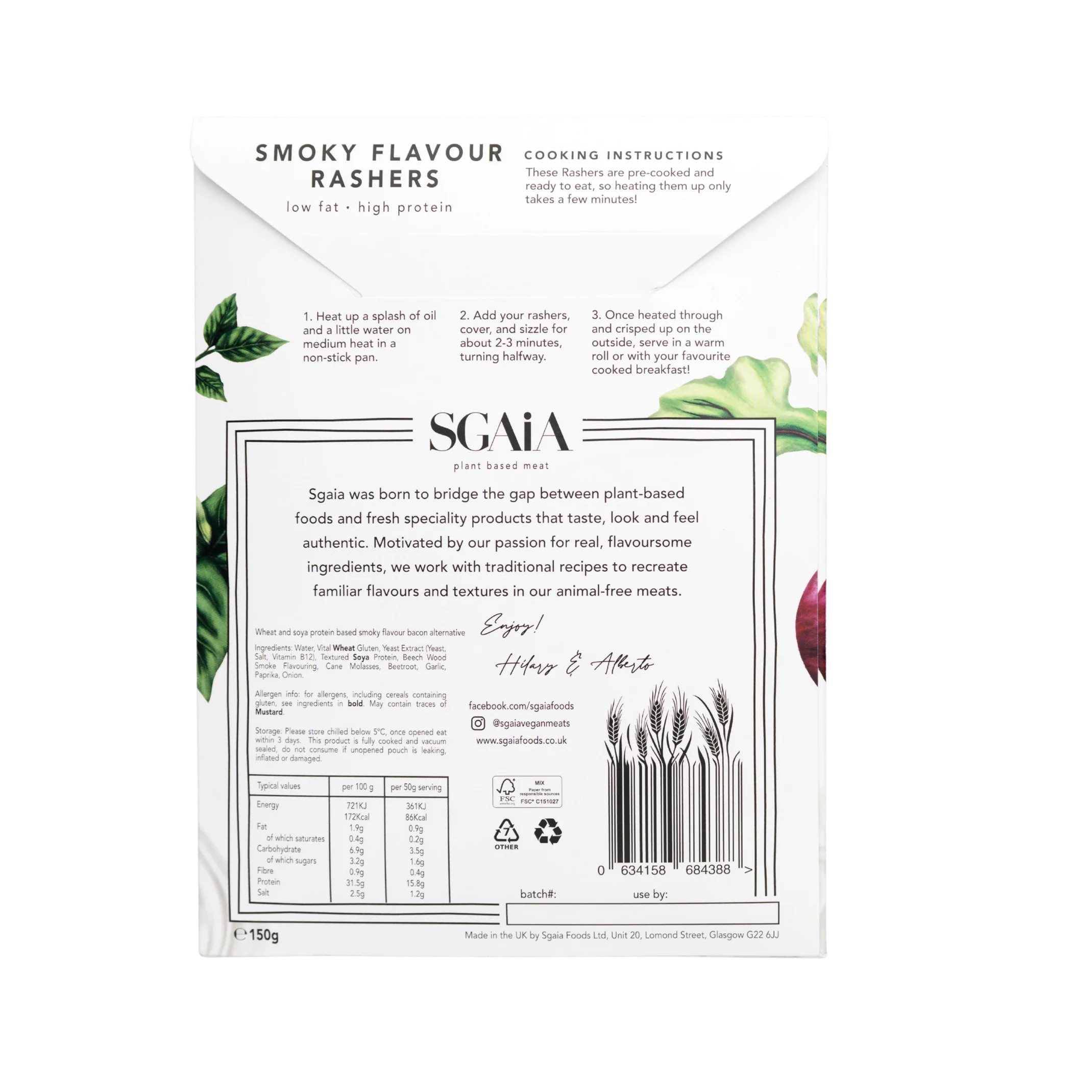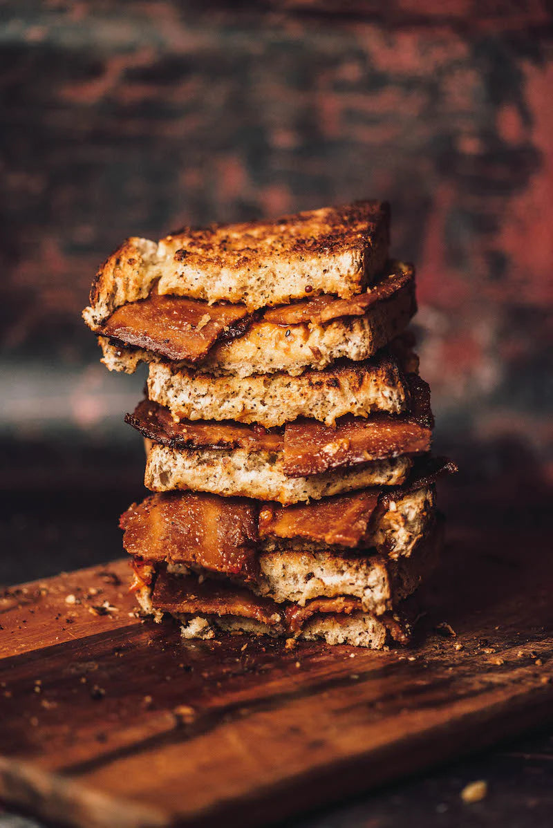 Not just made to look like streaky bacon, we've reinvented the streaks in our rashers to create a delicious play on flavours and textures. These rashers are smoky, salty, tasty. Perfect in a full vegan breakfast, on a stack of pancakes, in a BLT or added to your favourite burger.