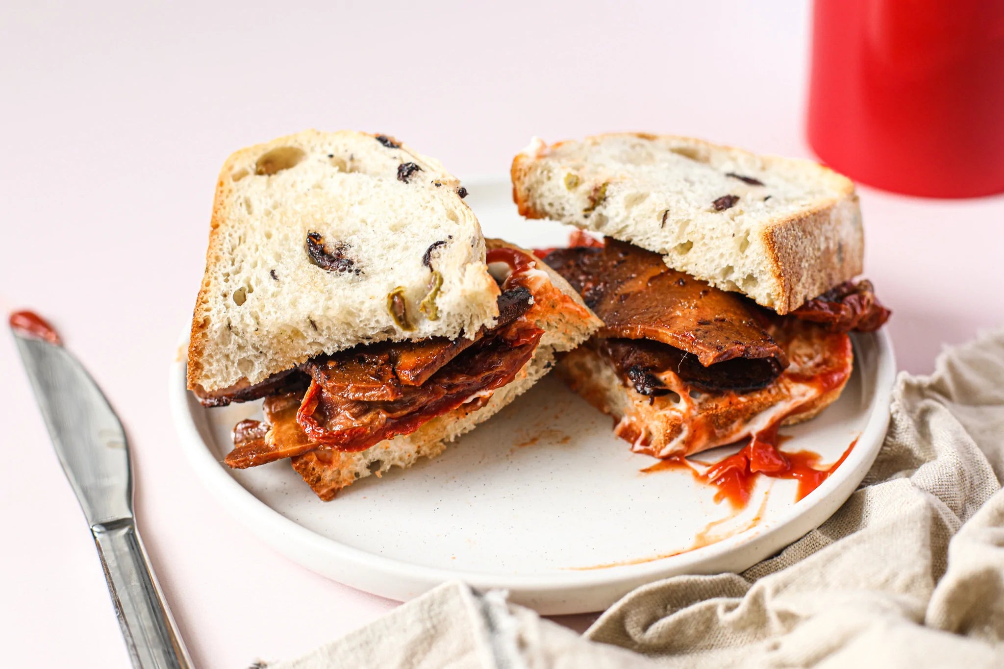 Ingredients: Water, Vital Wheat Gluten, Yeast Extract (Yeast, Salt, Vitamin B12), Textured Soya Protein, Beech Wood Smoke Flavouring, Cane Molasses, Beetroot, Garlic, Paprika, Onion.