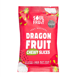 Our signature soft dried Dragon Fruit. Nothing but whole slices of red & white Dragon Fruit dried into a satisfyingly chewy fruit snack. Award winning healthy snack with no added sugars, concentrates or preservatives - the only ingredient is Dragon Fruit. 1 of your 5 a day, High in Fibre, Vegan & Gluten Free. Satisfy those sweet cravings with a whole-food snack thats great for the whole family.