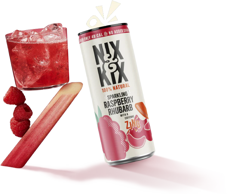 A lightly sparkling drink of sweet raspberry paired with tangy rhubarb, a zing of cayenne and other fruit juices.
