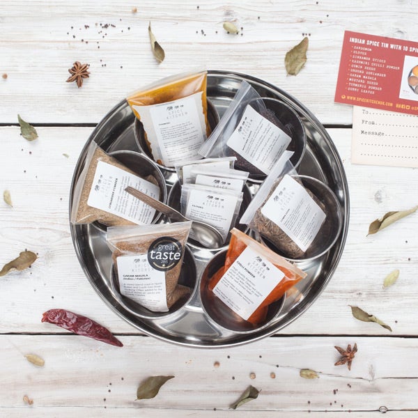 Spoil someone special and give them their own wonderfully personalised spice tin. Our bestselling Indian Spice Tin (Masala Dabba) is the perfect all-year-round gift for budding home cooks and experienced chefs who wish to recreate authentic Indian meals at home. Especially popular with those looking to find a gift for those 'difficult to buy for' men in their lives. Give them the perfect unique gift for any and every occasion.