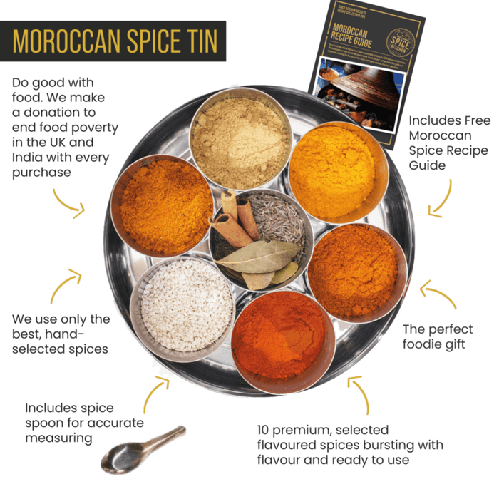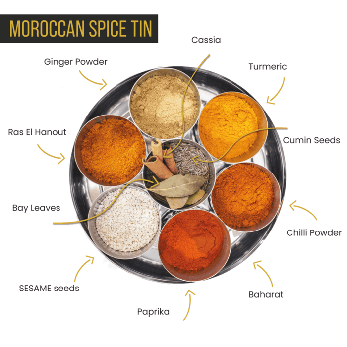 Indulge in the authentic flavours of Morocco with our premium Moroccan Spice Tin. Curated to bring the rich and vibrant tastes of traditional Moroccan cuisine directly to your kitchen, this spice kit is perfect for both novice cooks and seasoned chefs. Enhance your dishes, from classic tagine and couscous to creative marinades and seafood, with our carefully selected blends that promise to elevate every meal.