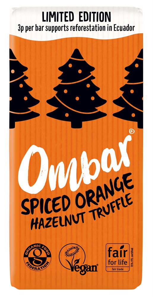 Centres Hazelnut Truffle, but make it Christmas. Ombar's indulgent nutty truffle, meets chocolate orange, meets warming, festive spices, what's not to love? For every bar of Spiced Orange Hazelnut Truffle sold, 3p will be donated to Fundacion Jocotoco, an NGO based in Ecuador. Jocotoco are working to reforest the Choco Rainforest, a global biodiversity hotspot, located close to where Ombar sustain...