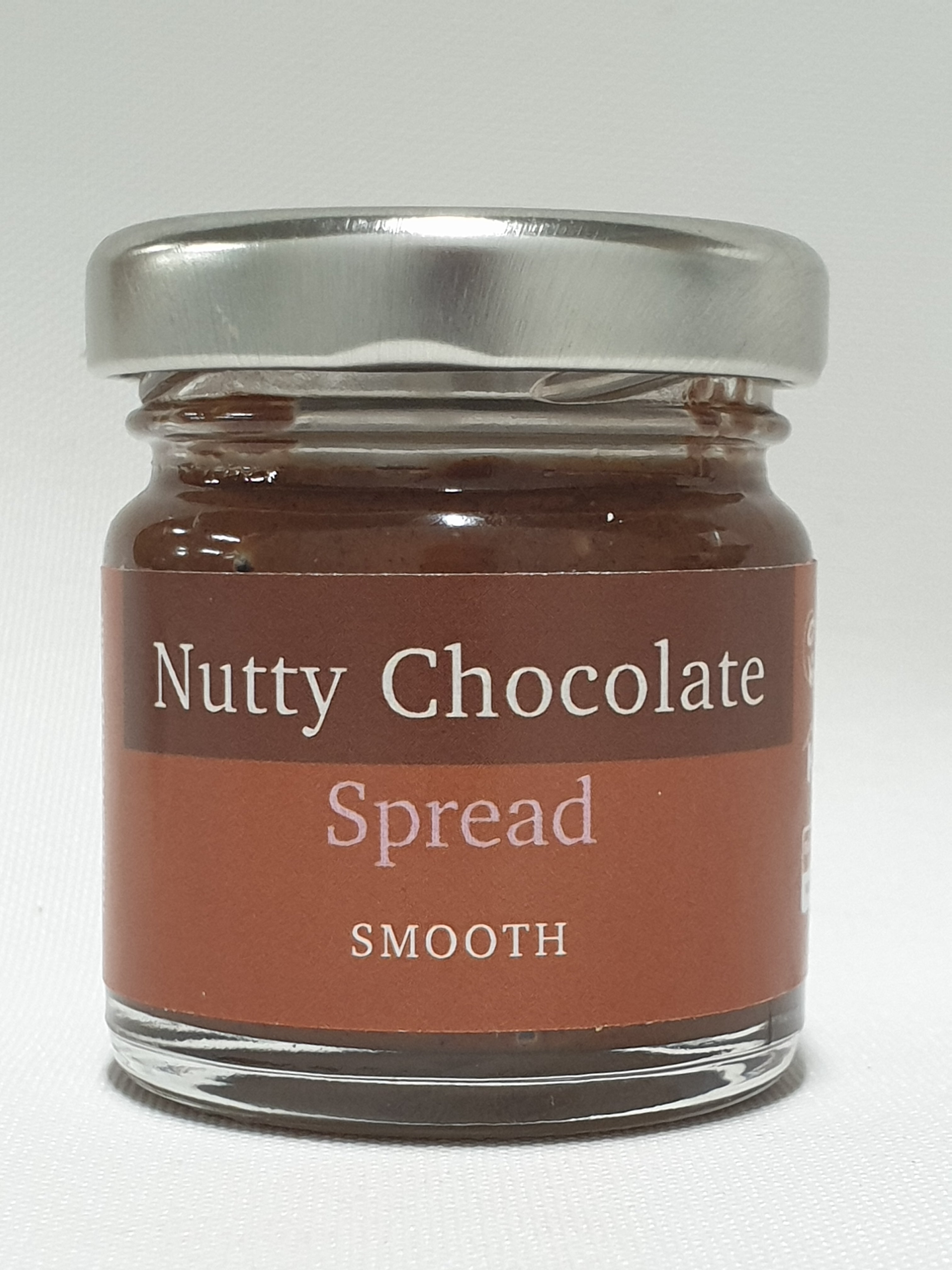 Smooth Nutty Chocolate Spread 35g: Almond, Cashew, Hazelnut, Cacao, Dates. Allergen: Tree Nuts.