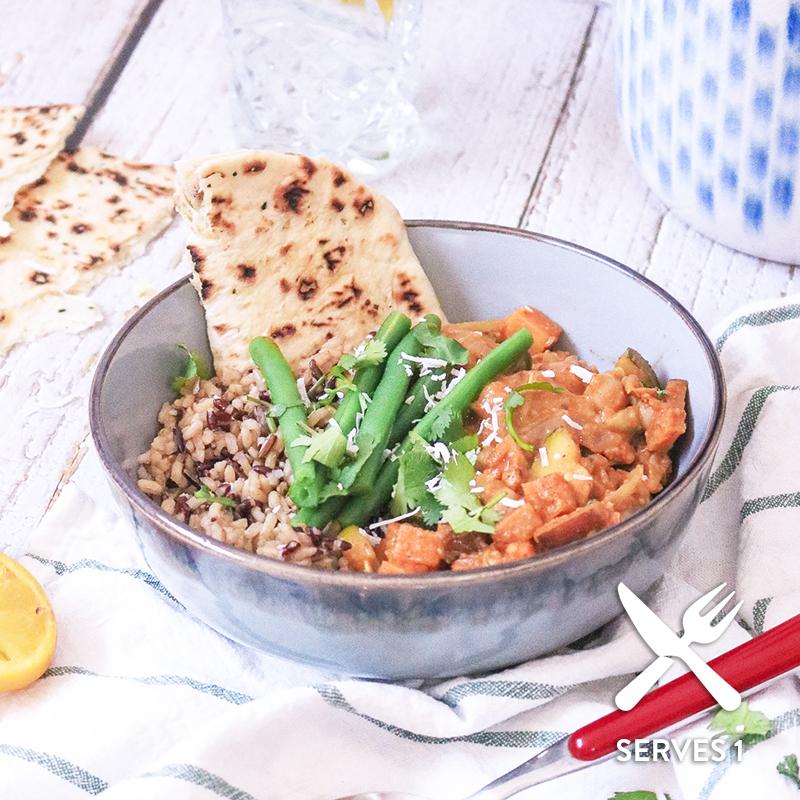 Deliciously creamy Sri Lankan curry with sweet potato, courgette and chickpea. 350g.