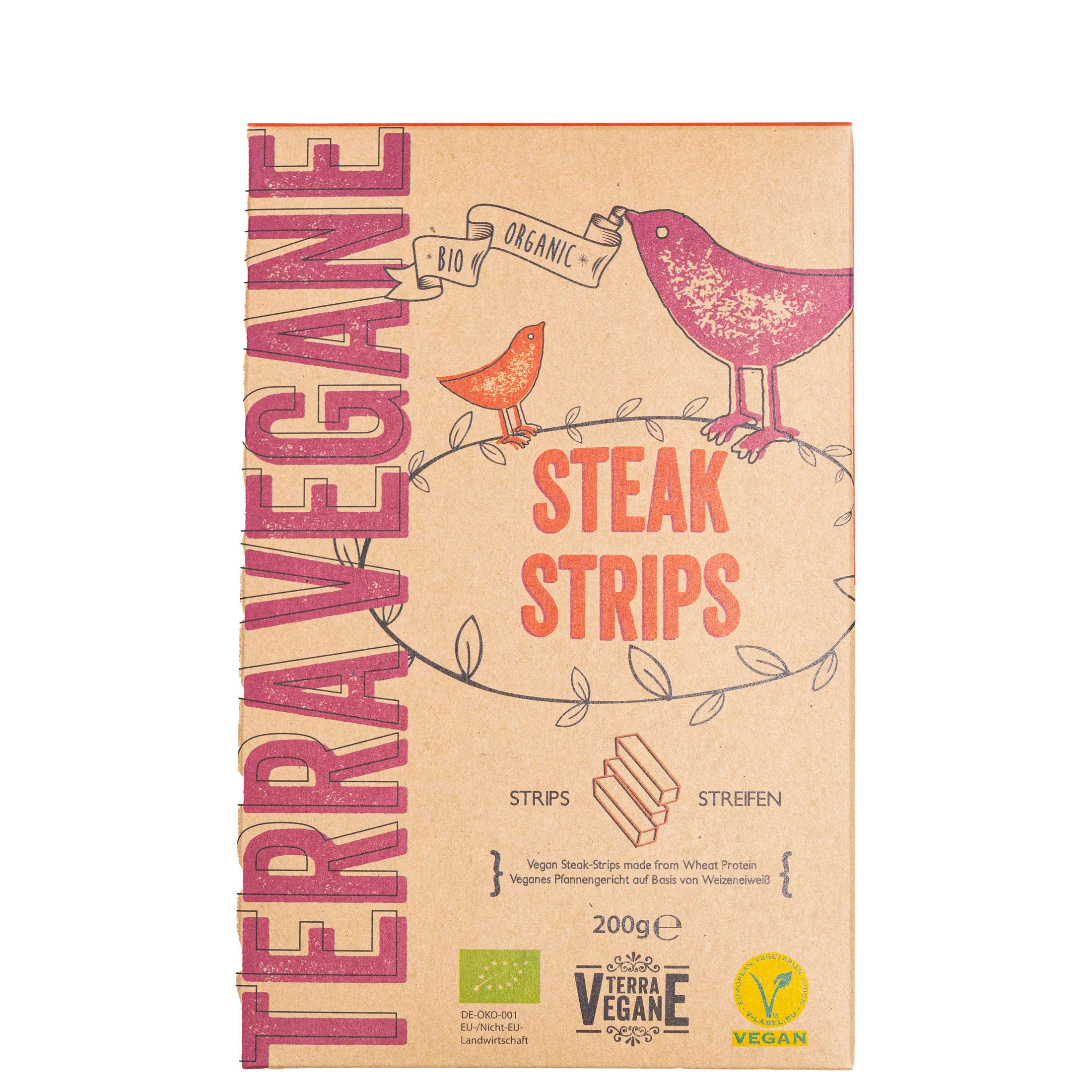 Vegan steak strips, made from wheat protein. Perfect for Gyros, Stir-Frys or Fajitas.