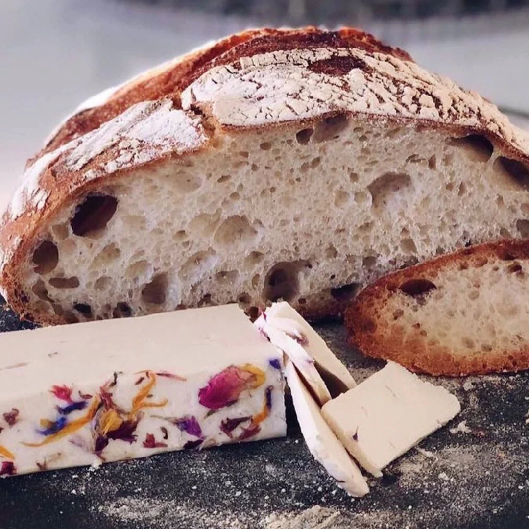 Truffle-infused cashew cheese, topped with dried flowers to make it really stand out on any cheeseboard. Rich and smooth, it may look like a summer meadow, well it tastes like one too!