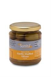 Sunita classic Greek Konservolia hand-picked olives. Carefully filled with fresh garlic.