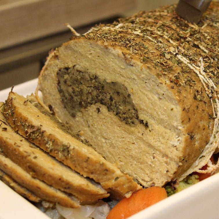 Let Sunshine Vegan Deli do the hard work for you with our vegan Cluckin + Stuffin Roast!