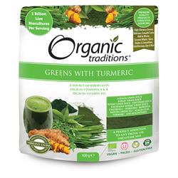 Organic Traditions Probiotic Super Greens Blend is the ultimate alkalizing, nutrient-dense greens formula made from the young, juiced grasses of alfalfa, barley, kamut, oat and wheat in their vegetable state, 2 of nature's most nourishing algae Chlorella and Spirulina, Moringa, Matcha green tea, turmeric powder extract as well as pre and probiotics. These powerful young, green grasses contain an a...