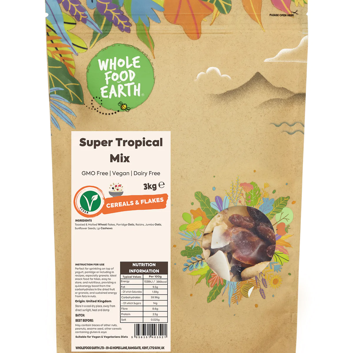 Our nutty tropical mix lets you feel those sunnier shores with its flavoursome ingredients like pineapple, almonds, hazelnut, banana chips, papaya and dates (for full list of ingredients please see below).