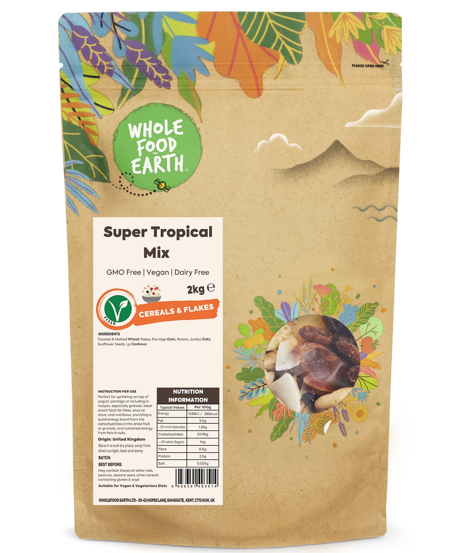 Our nutty tropical mix lets you feel those sunnier shores with its flavoursome ingredients like pineapple, almonds, hazelnut, banana chips, papaya, and dates (for a full list of ingredients please see below).