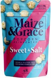 Sweet & Salt Popcorn, 50g. Vegan, Gluten-Free, 100% Natural, Source of Fibre. At Maize & Grace, our mission is to make very high quality popcorn that is both light and perfectly satisfying. We offer our popcorn in a range of amazing sweet and savoury unique flavours that are all 100% natural.