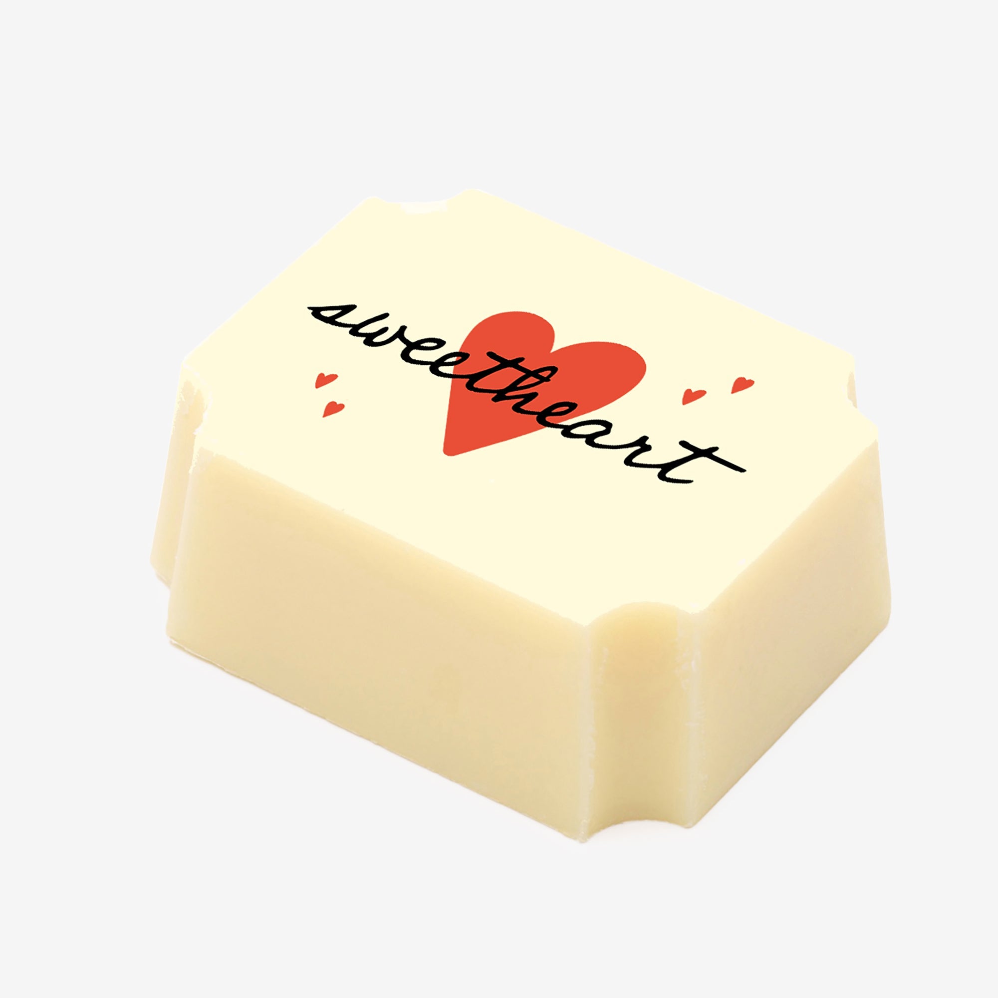 A luxury selection box featuring two special 'For My Sweetheart' themed chocolates with an array of filled artisan chocolates, chocolate buttons, mini chocolates bars and more. Made with natural ingredients and hand-decorated with cocoa butter.