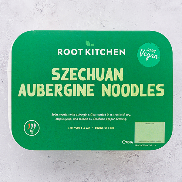 Aubergine (39%) (Aubergine, Sunflower Oil), Cooked Soba Noodles (25%) (Soba Noodles [Wheat Flour, Buckwheat Flour, Water, Salt], Water, Rapeseed Oil), Water, Dark Soy Sauce (Water, Salt, Colour: Plain Caramel, Sugar, Soya Beans, Wheat Flour), Maple Syrup, Sesame Oil (Sesame Oil, Soya Bean Oil), Rice Vinegar, Onions, Garlic, Ginger, Tapioca Starch, Red Chilli, Szechuan Pepper.
