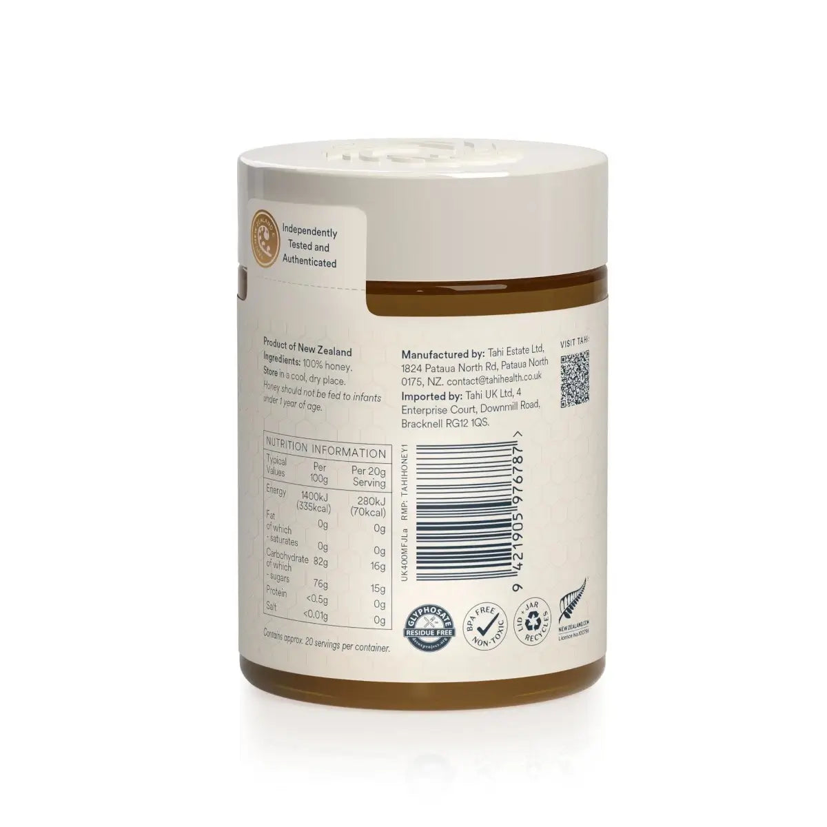 A delicious blend of honey from the Mānuka flower and other New Zealand wildflowers with a certified MGO amount of minimum 50 mg/kg. Methylglyoxal (MGO) is the measure of the unique properties of Manuka honey. Tahi Multifloral Manuka honey is a superfood rich in unique nutrients and antioxidants. It has a sweet, smooth and mildly tangy taste with a unique depth of flavour. It is ideal for everyday eating, by the spoonful, as a spread on toast or bread, or to add sweetness and flavour to granola bowls, smoothies and juices. Tahi Multifloral Manuka honey won 2 stars at the London Great Taste Awards 2024.